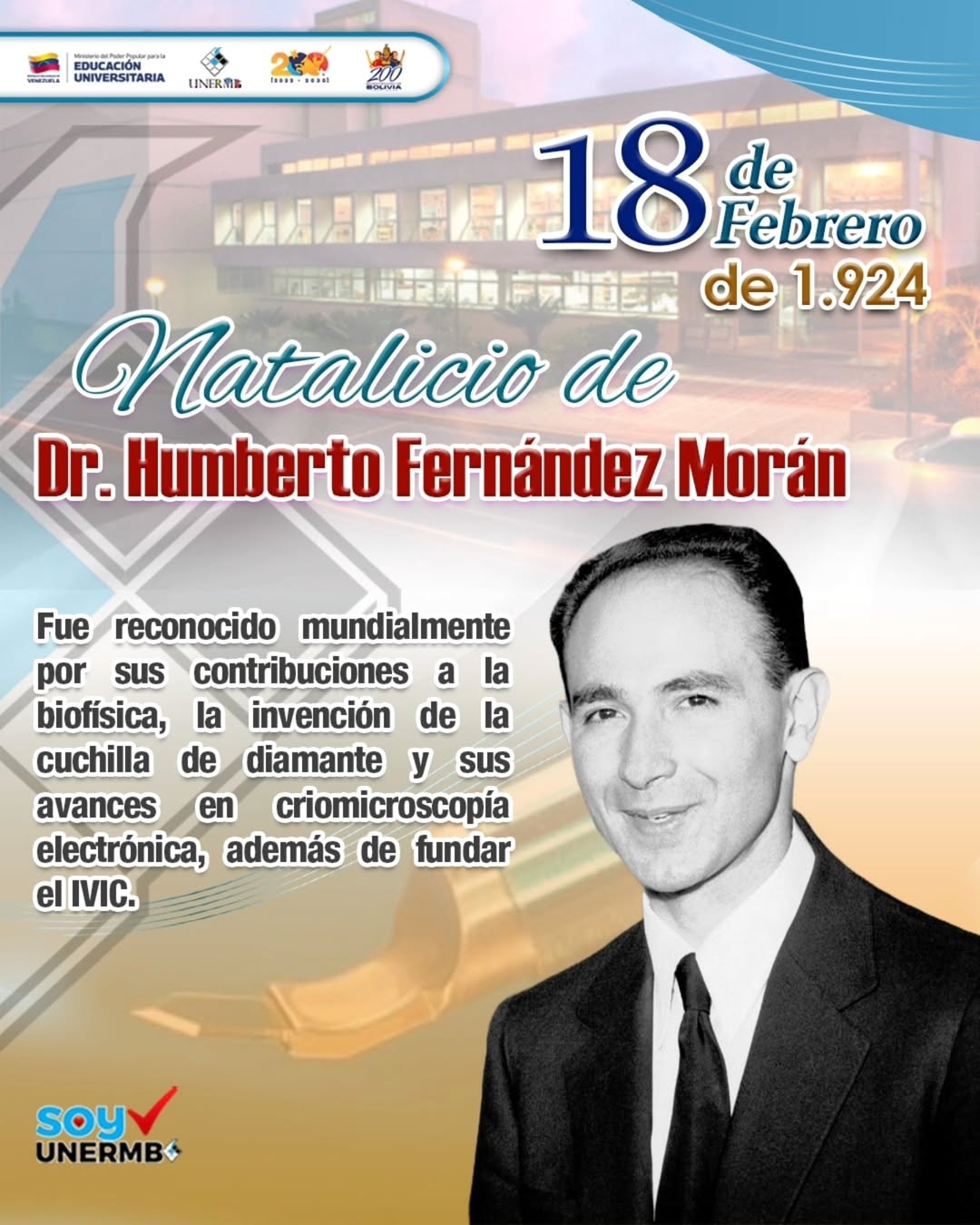 El 18 de febrero se conmemora el natalicio del Dr. Humberto Fernández Morán, uno de los científicos más brillantes en la historia de Venezuela y el mundo.