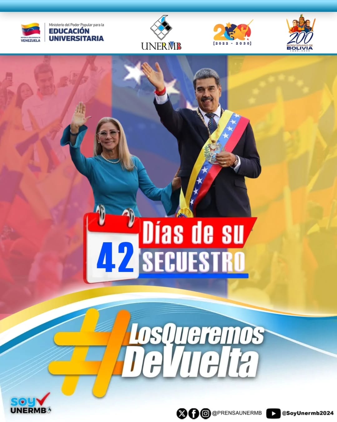 A 42 días del secuestro de nuestro Presidente Obrero Nicolás Maduro y la Dra. Cilia Flores, la comunidad universitaria se mantiene firme en la exigencia de su liberación.
